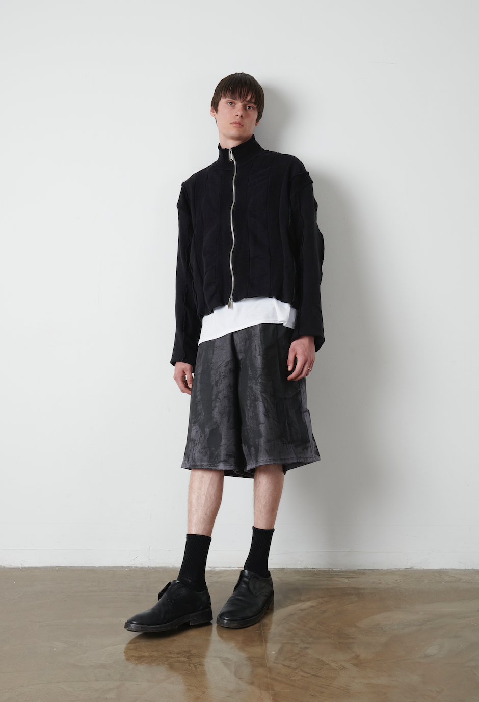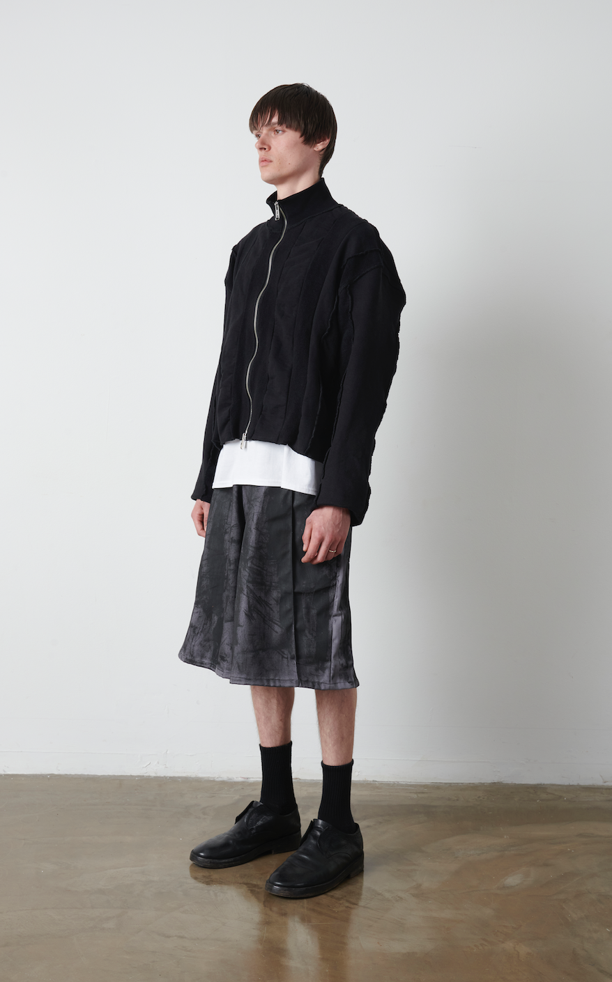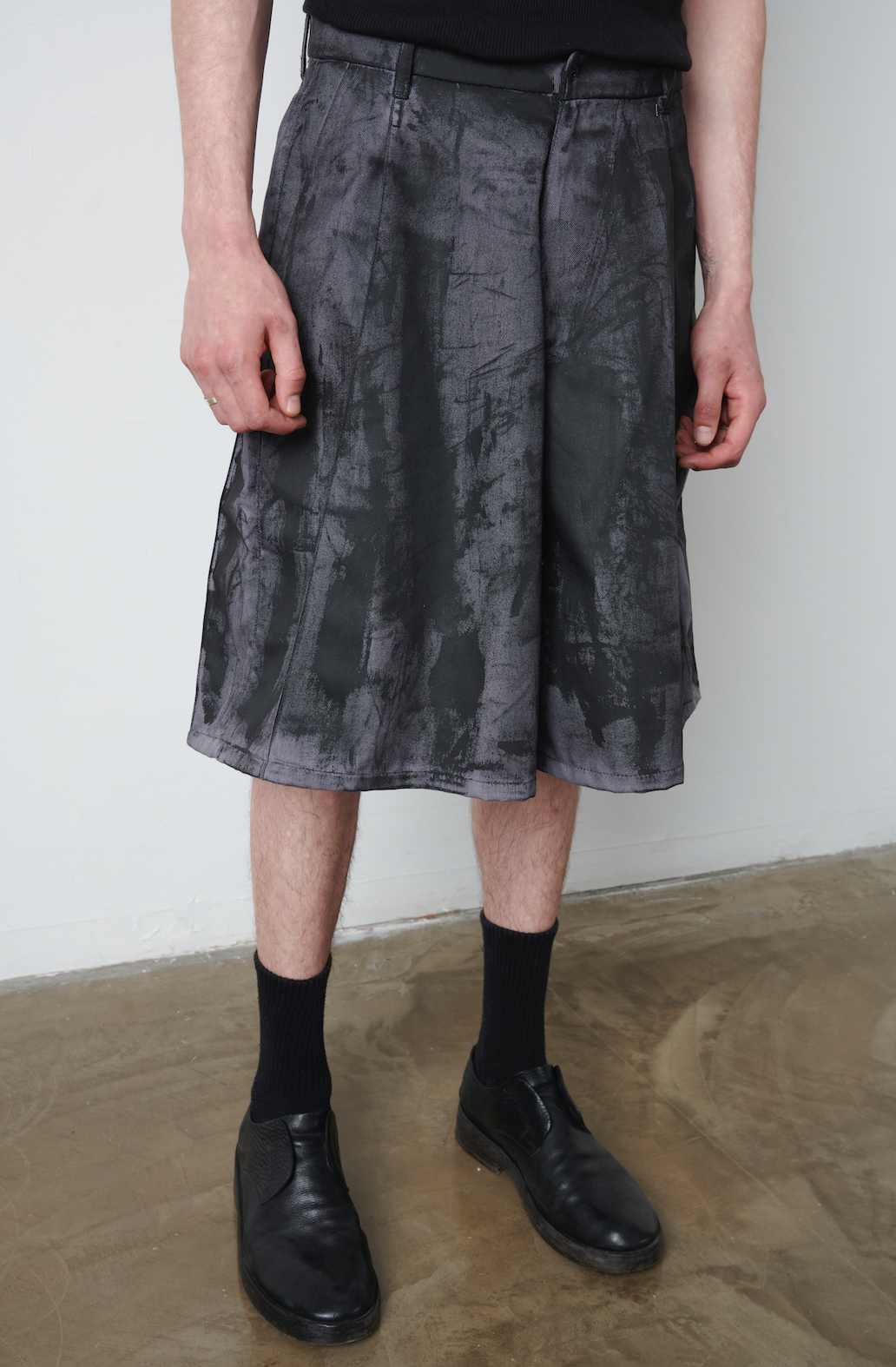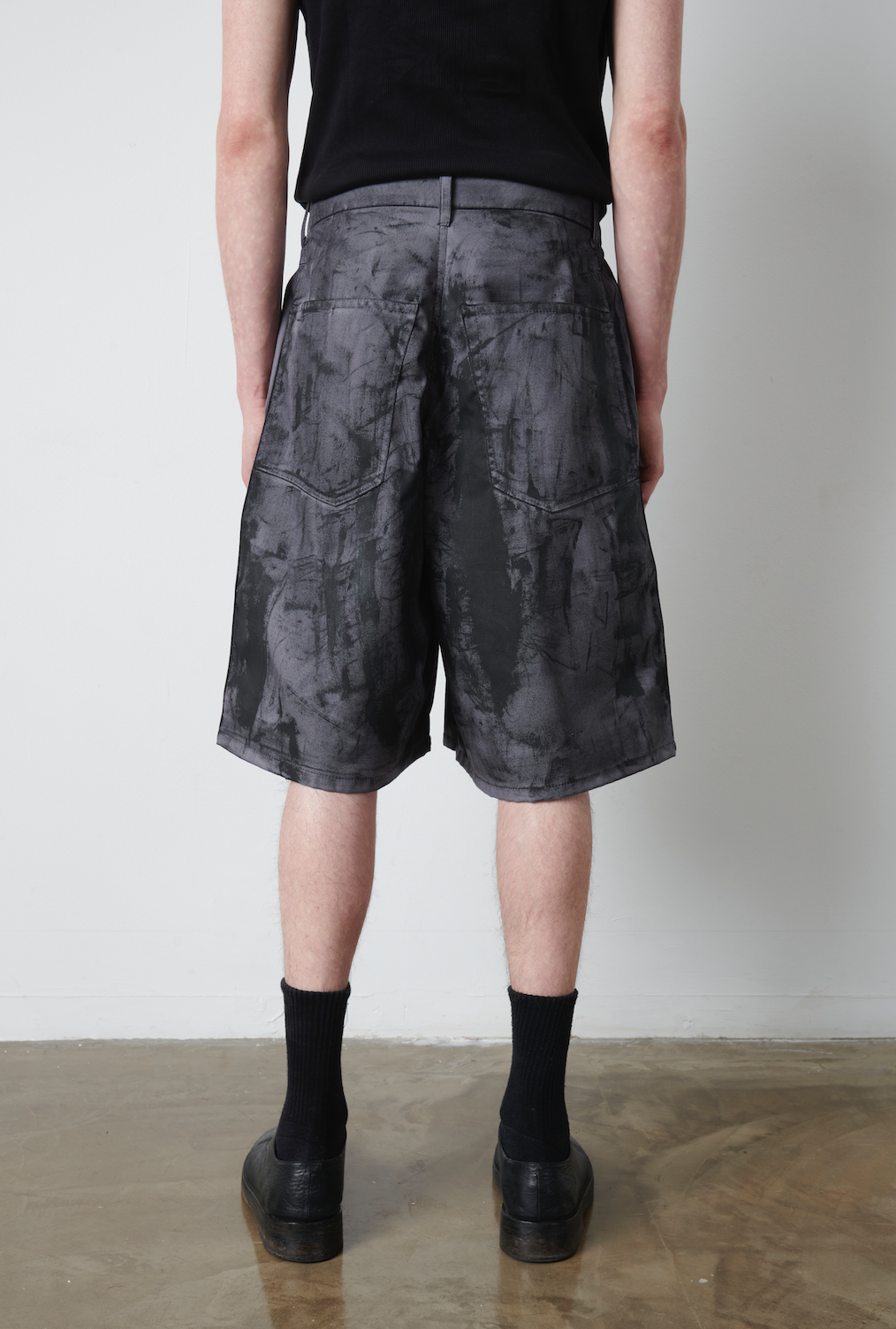 Cotton twill A-line shorts coated with our signature black wax treatment.
