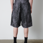 Wide-leg mid-rise pleated shorts with 2 pintucks front and back creating a boxy A-line silhouette.